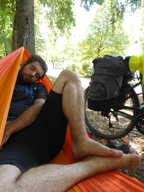 Enfin, hier à Nevers, nous avons pu étrainer notre hamac l'après-midi pour faire la sieste :
